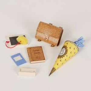 Lieferumfang: Schulranzen; Schultüte; Griffelkasten mit 2 Griffeln; kleine Tafel mit Schwamm; Lesebuch; Schulheft