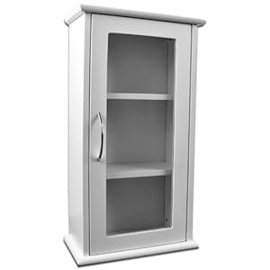 Der weiße Holzschrank ist ca. 52 cm hoch, ca. 28 cm breit und ca. 16 cm tief. Der kompakte, aber geräumige Schrank verstaut alltägliche Hygieneartikel übersichtlich und sicher. Der Korpus ist aus Holz gefertigt und besitzt zwei Einlegeböden, wodurch drei praktische Ablageflächen entstehen. Die Schranktür besitzt einen weißen Rahmen, der eine Glasscheibe umfasst und mit einem stabilen Scharnier am Korpus befestigt ist. Der Inhalt des Badschranks kann also auch durch die geschlossene Schranktür gesehen werden. Am Rahmen ist außerdem ein Griff aus Metall montiert, der ein leichtes Öffnen und Schließen ermöglicht. Der Badschrank wird demontiert und mit dem benötigten Zubehör sowie einer Aufbauanleitung geliefert. Im Lieferumfang befindet sich außerdem eine Vorrichtung, um den Schrank hängend an der Wand anzubringen. Als Hängeschrank integriert sich das weiße Möbelstück hervorragend in Ihre vorhanden Badeinrichtung.